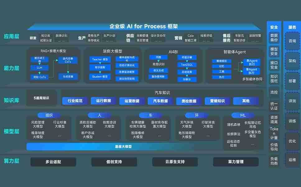端到端的一站式AI工作空间深度融合了从企业战略规划到日常经营的全流程业务板块,,,,定向解决车企内部领域多、、、部门多、、链条长、、、、场景碎片化等难题,,,支持车企快速构建以AI为核心的生产力写作体系,,实现任务执行与AI能力的无缝集成与交互